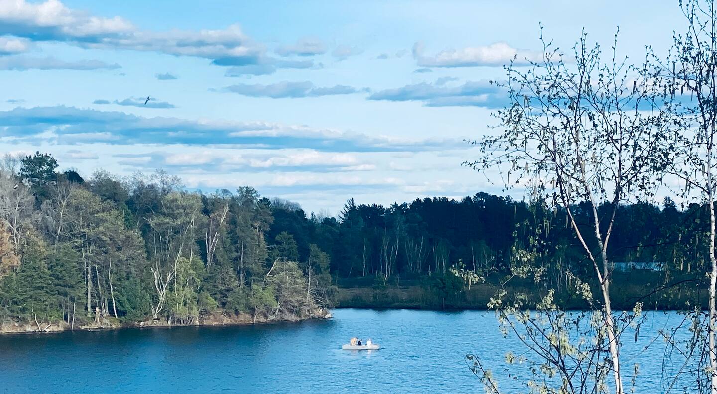 Rustic and charming, the cabin is designed for those looking to unplug and embrace the Northwoods. Evenings are perfect for roasting marshmallows by the firepit, grilling lakeside meals, or paddling the calm waters with shared kayaks (first come, first served).