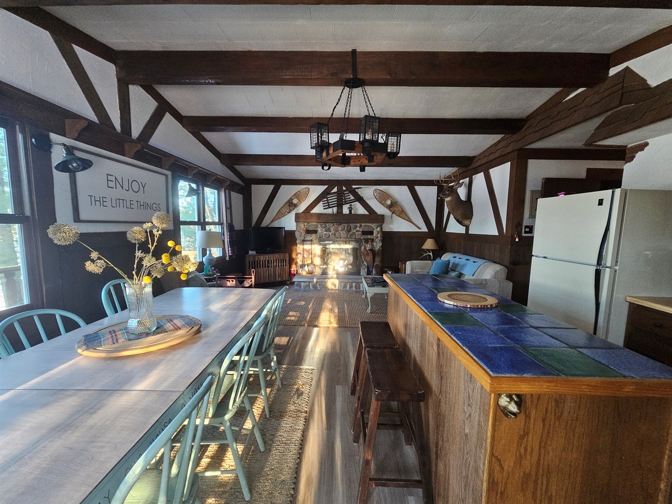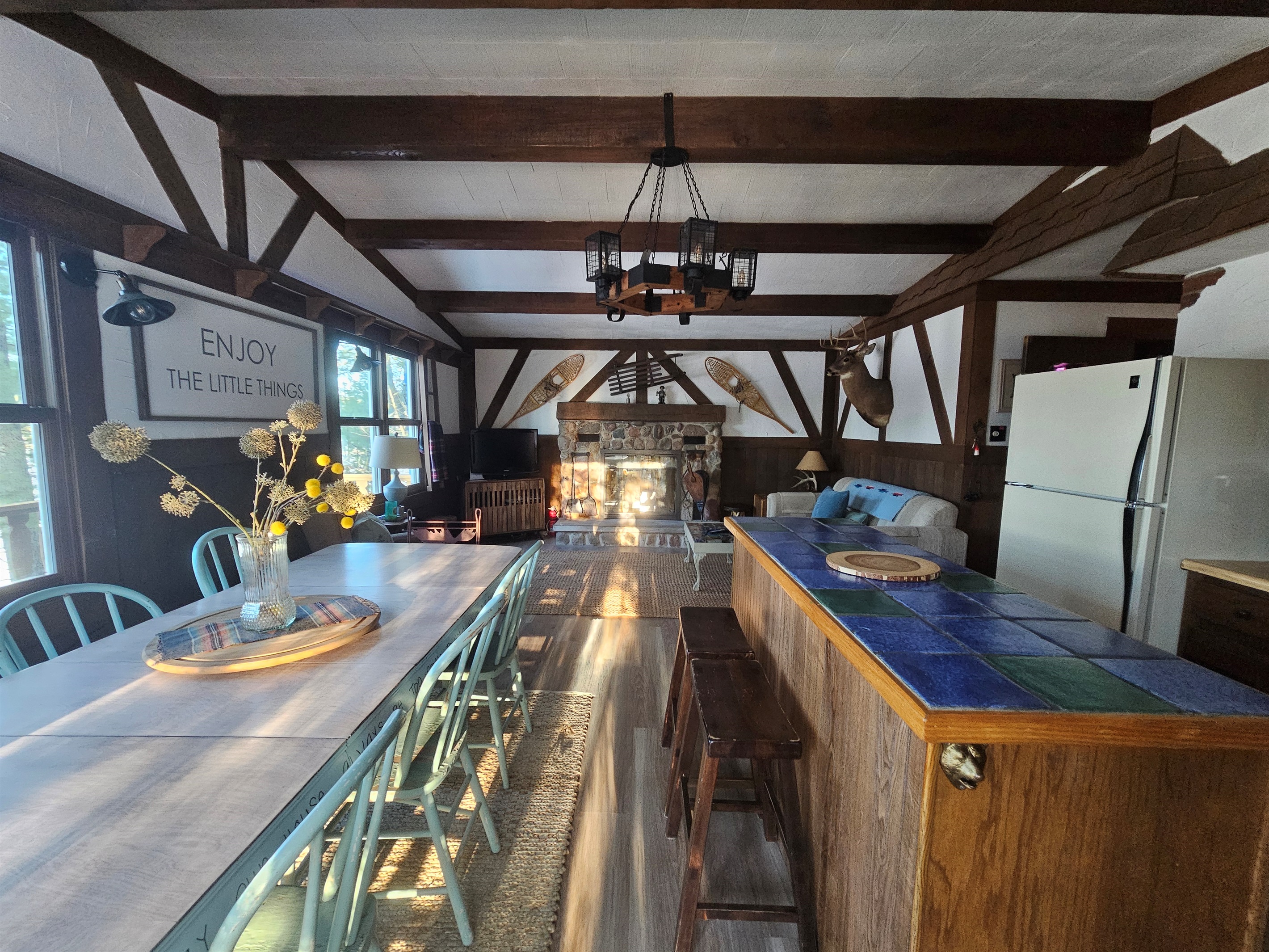 -Guests have full access to the home and property, including the lakefront, dock, and outdoor living spaces. The cabin is located on a quiet private drive, offering both privacy and peace while still being close to town.