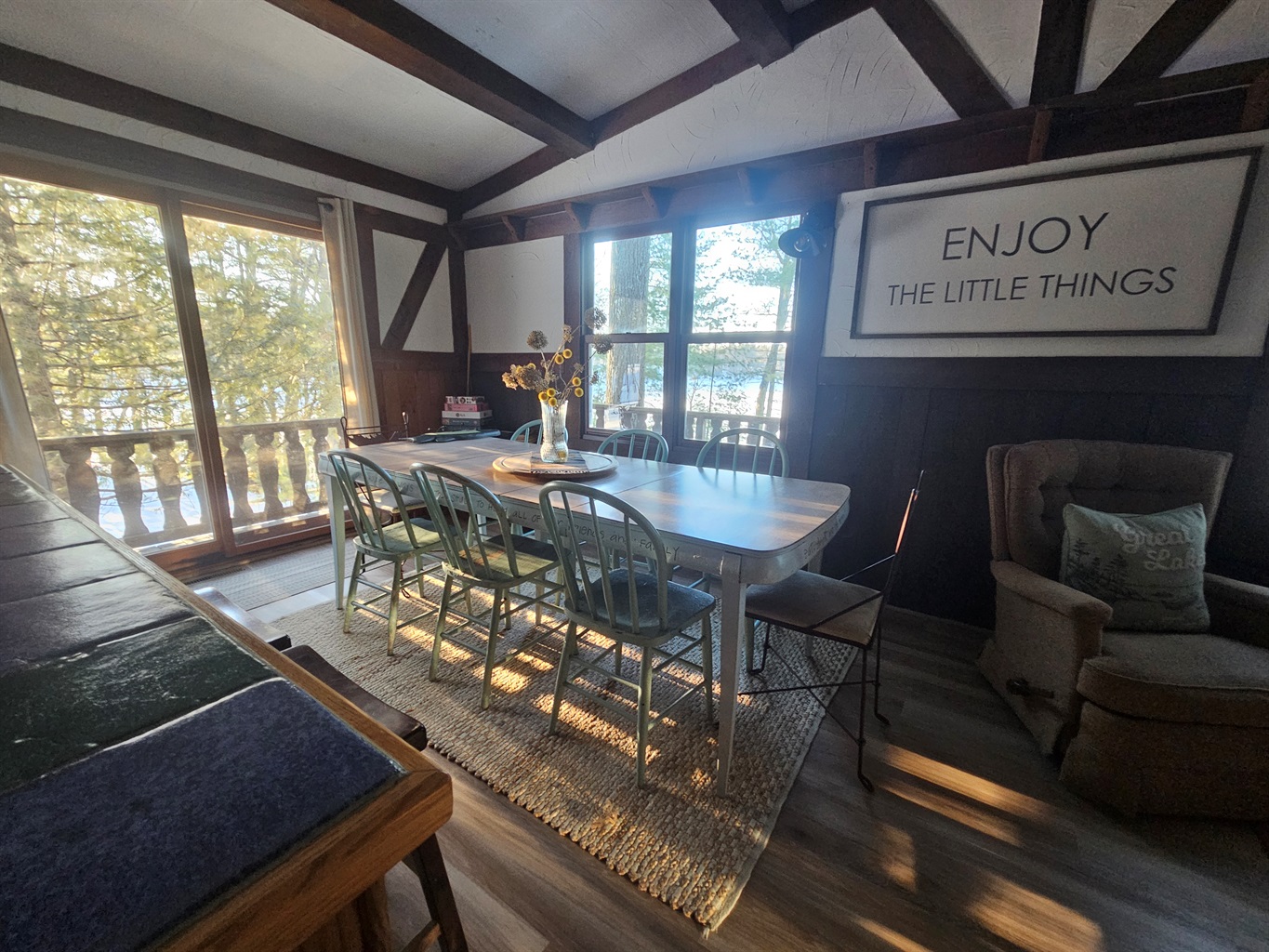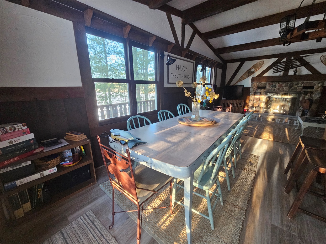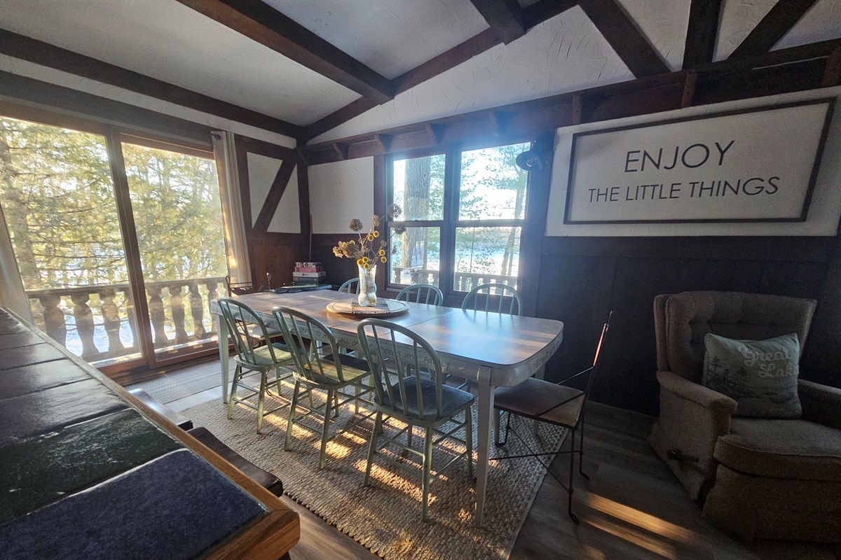 Our family grew up vacationing at this Northwoods cabin, and it’s a place full of memories. We love the calm lake for skiing and kayaking, grilling hot dogs over the fire pit on summer nights, and cozying up indoors during the winter months.
