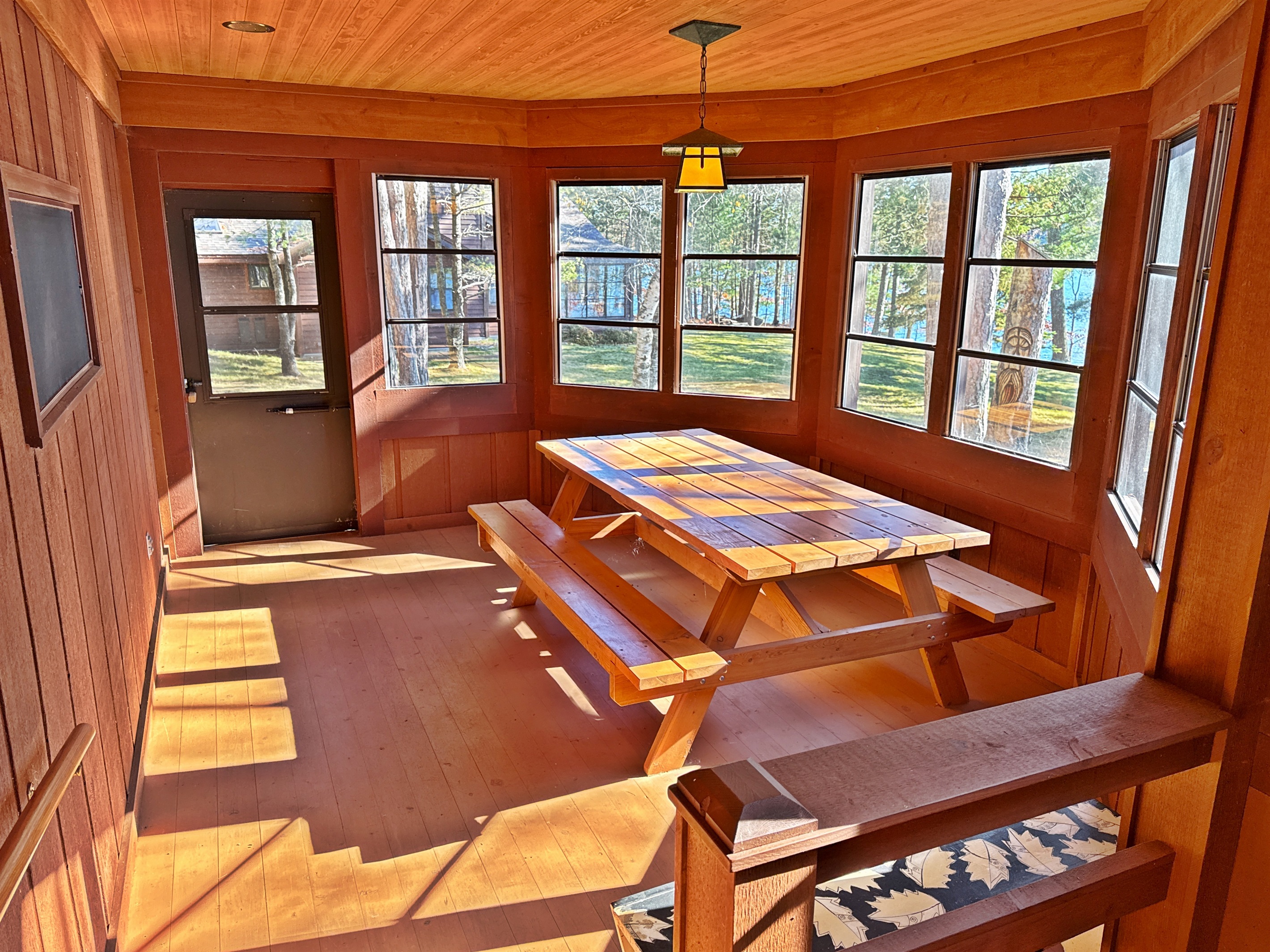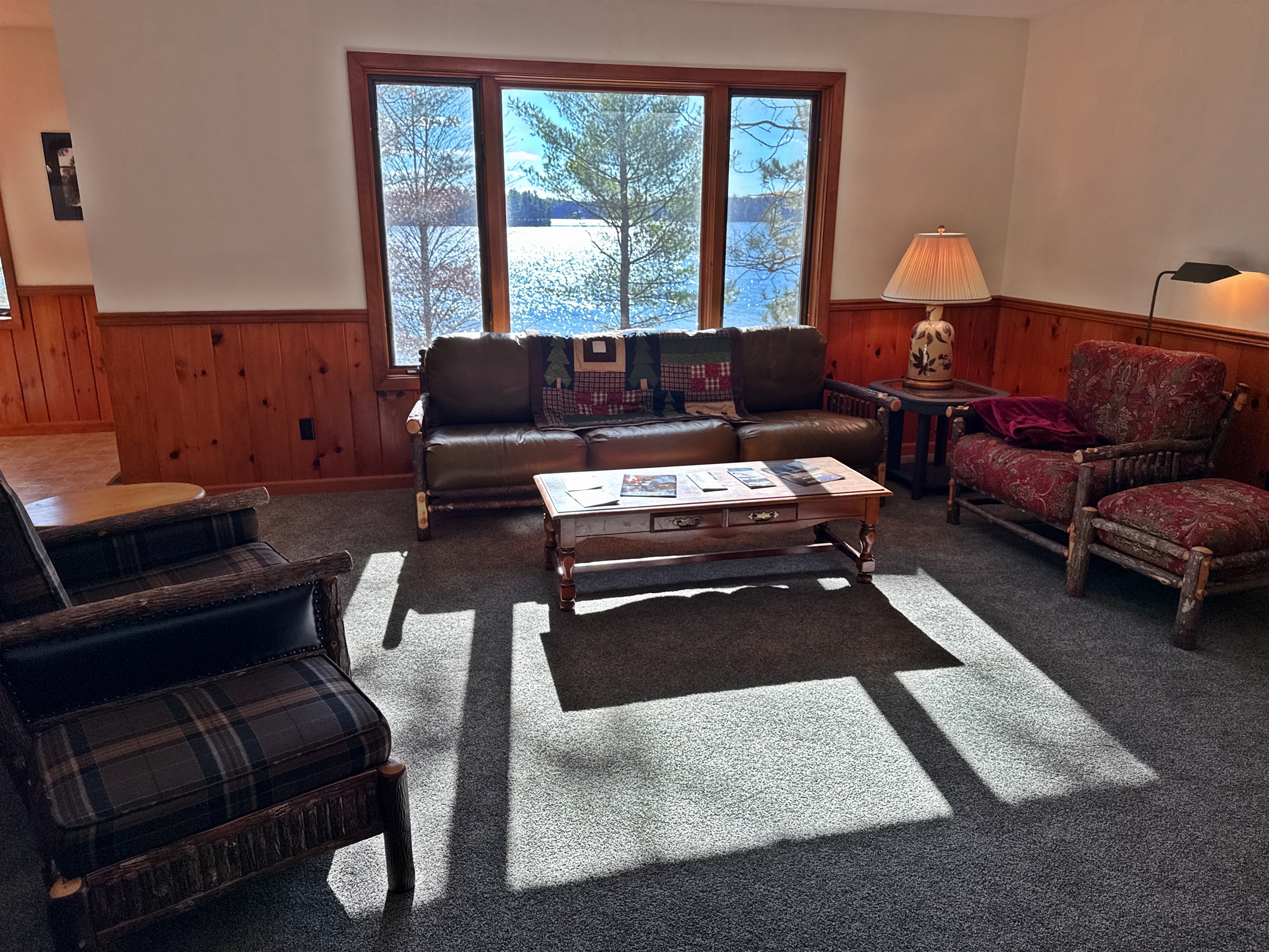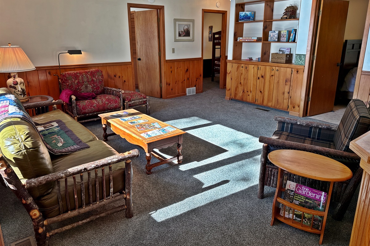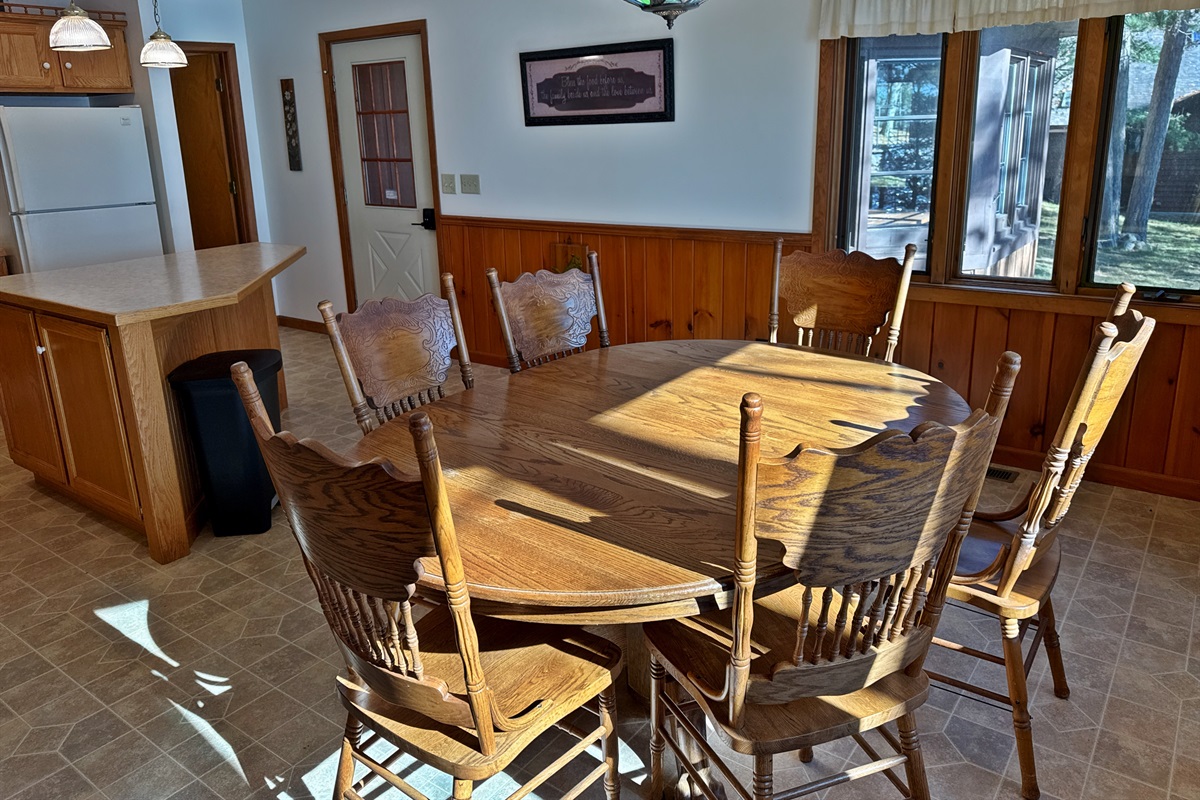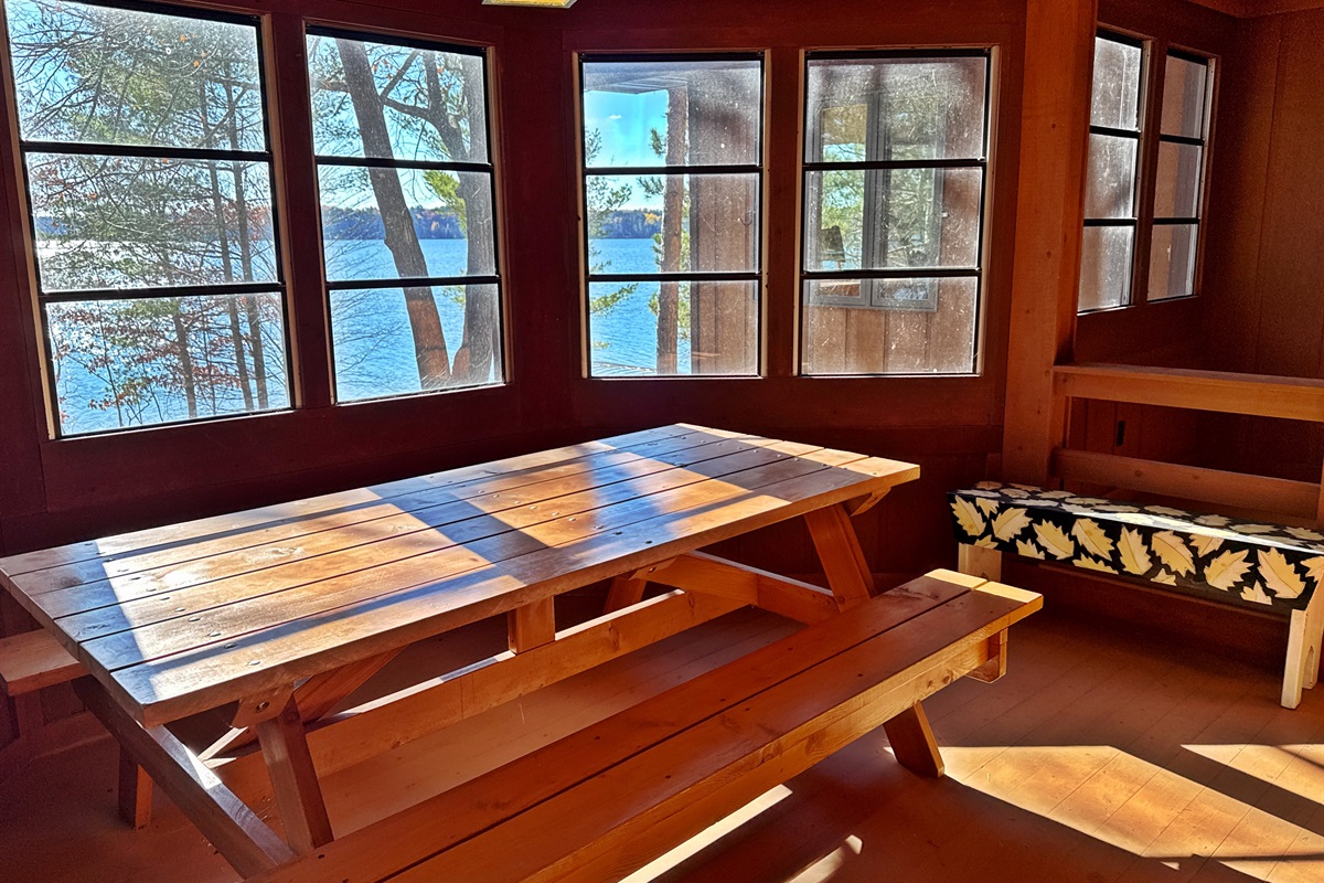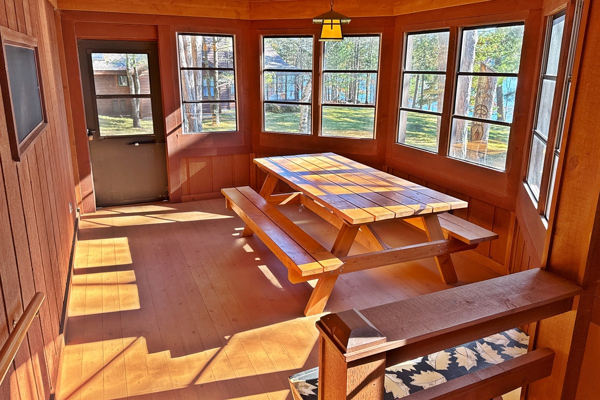Step inside to find a warm, welcoming space with all the essentials for a relaxing stay. The bright, open-concept living area features large windows overlooking the lake and a comfortable sitting area perfect for morning coffee or evening games. The kitchen is fully equipped with a stove, refrigerator, microwave, and coffee maker, and the dining space is great for shared meals or rainy-day puzzles. A three-season porch brings the outdoors in and offers a wonderful place to relax or watch the sunset.