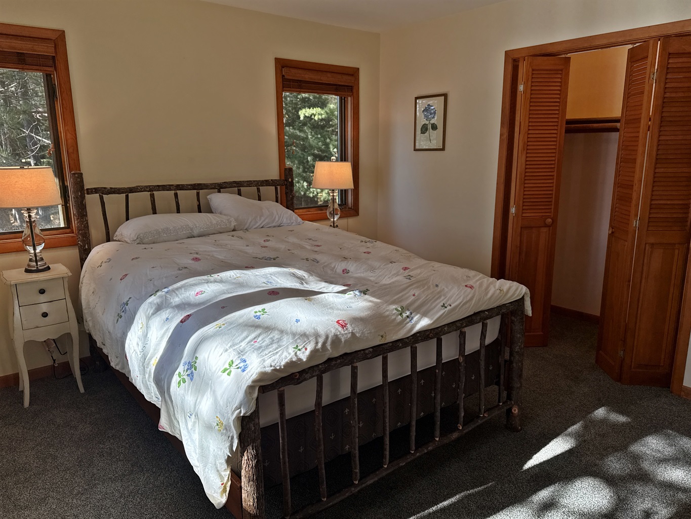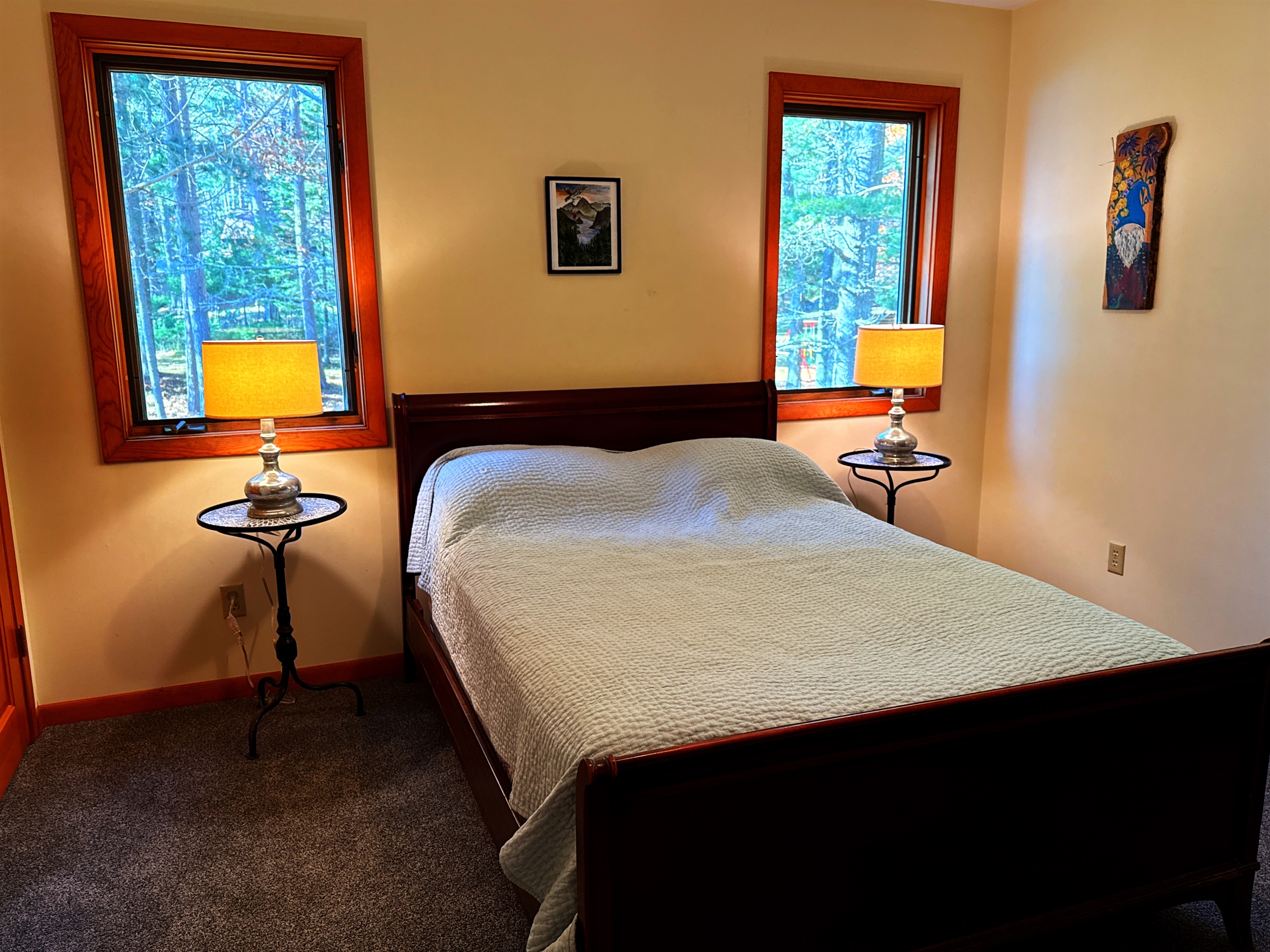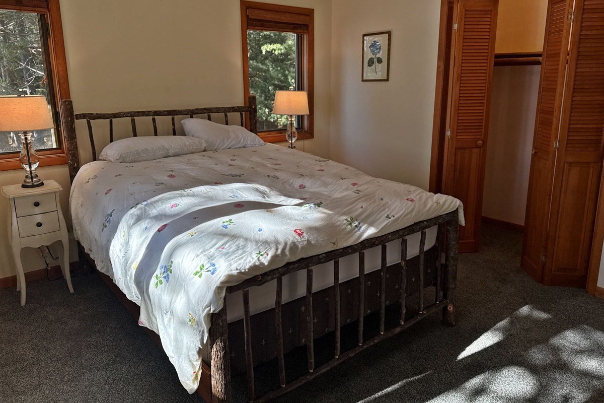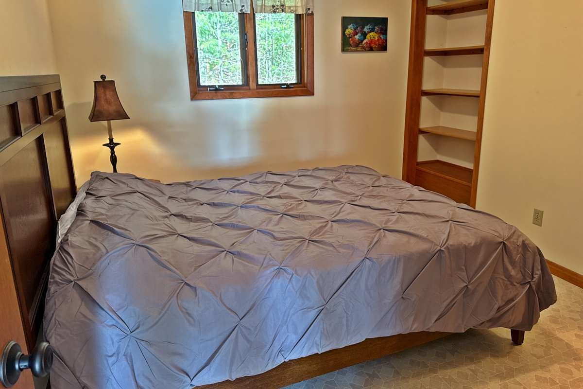 The cabin comfortably accommodates up to six guests and is well-suited for couples, small families, or friends seeking a peaceful Northwoods retreat.