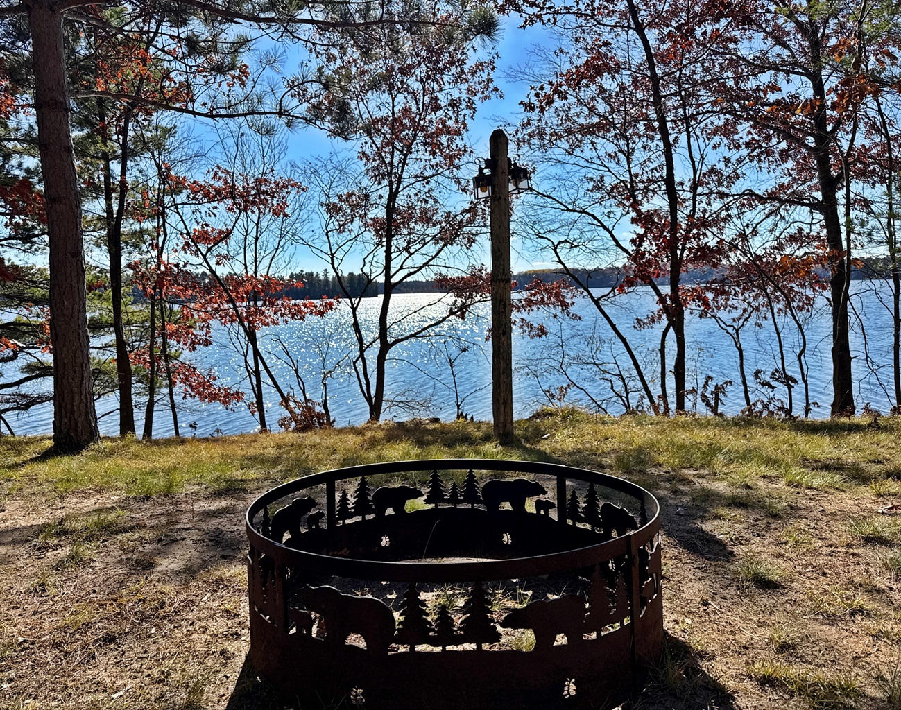 Outdoors, you’ll enjoy direct lakefront access with calm, clear waters ideal for swimming, kayaking, and fishing. The private yard is surrounded by towering pines, and a lakeside fire pit provides the perfect place to unwind and enjoy the stars. Convenient access to ATV and snowmobile trails makes this property an excellent year-round getaway.
