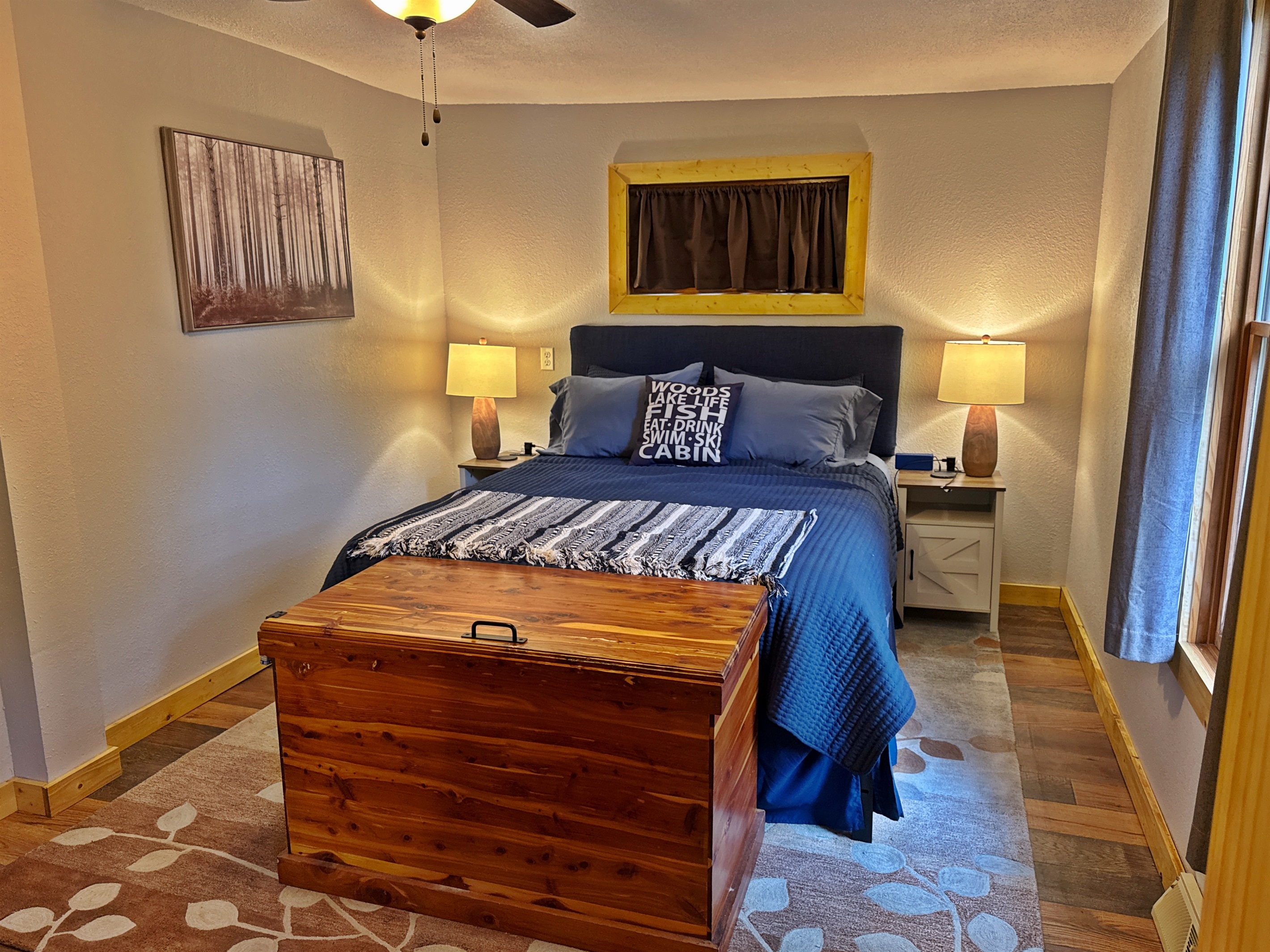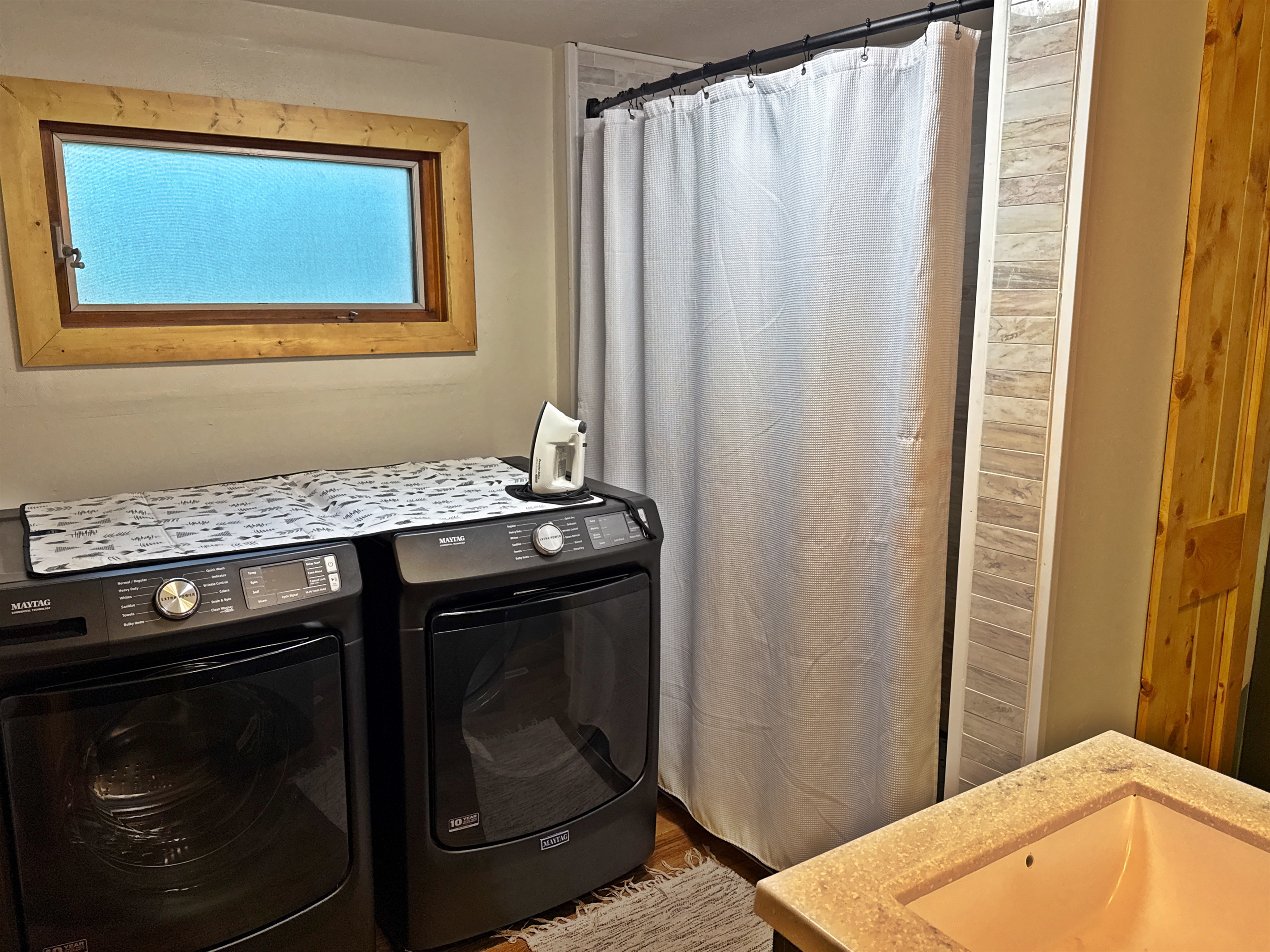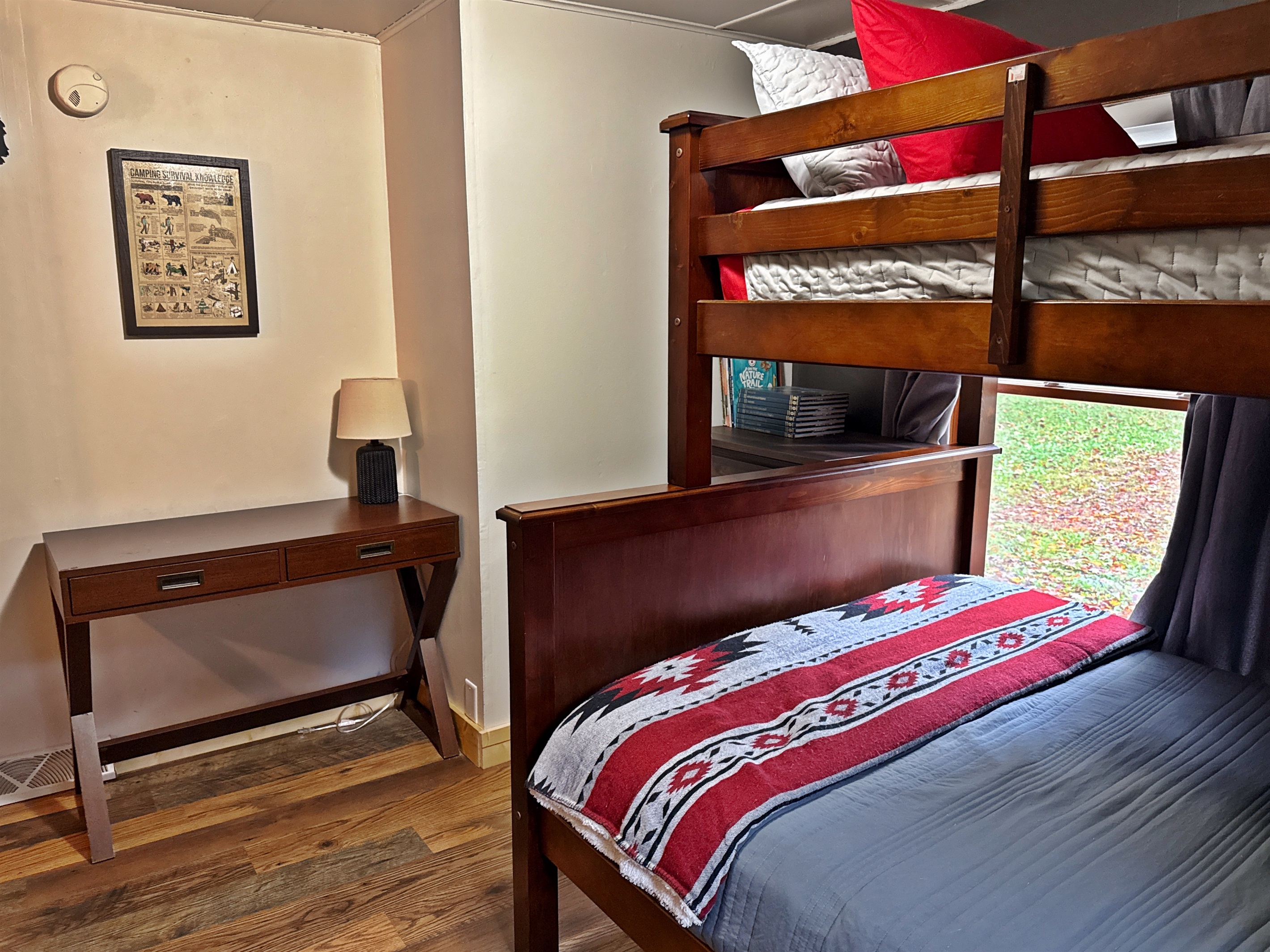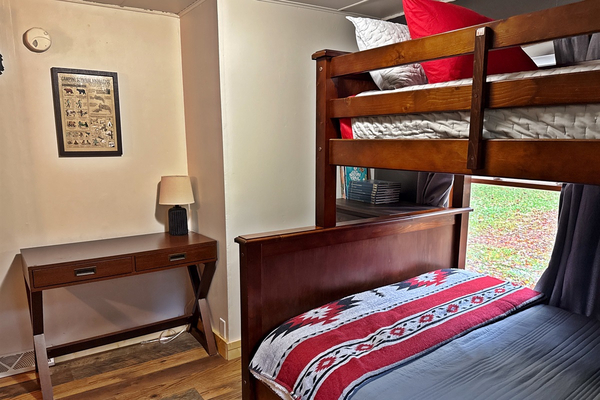 2 Bedrooms • 1 Bathroom 1 Bath • Sleeps 1-5This beautifully updated 2-bedroom, 1-bath cabin offers an open layout designed for comfort and privacy — the bedrooms don’t share walls, making it perfect for families or friends. Inside, you’ll find new appliances (including a washer and dryer), a Smart TV, and even a fun icee/slushy maker for summer treats.